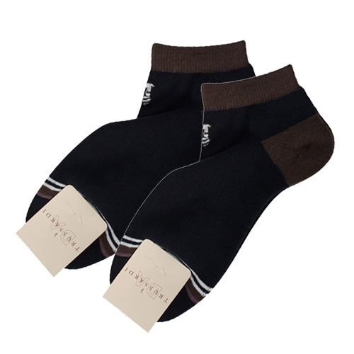 TRUSSARDI 休閒雙色毛巾底短襪【深藍色2入】
