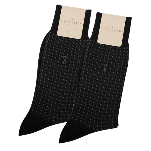 TRUSSARDI 棉質綠虛線紳士襪【深灰色2入】