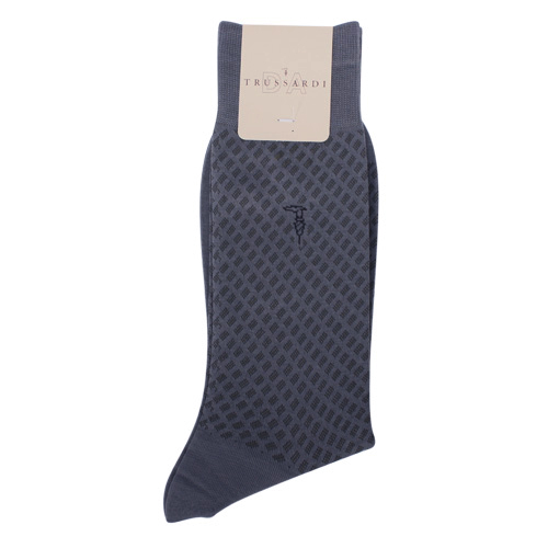 TRUSSARDI 滿版斜格紳士襪-灰色