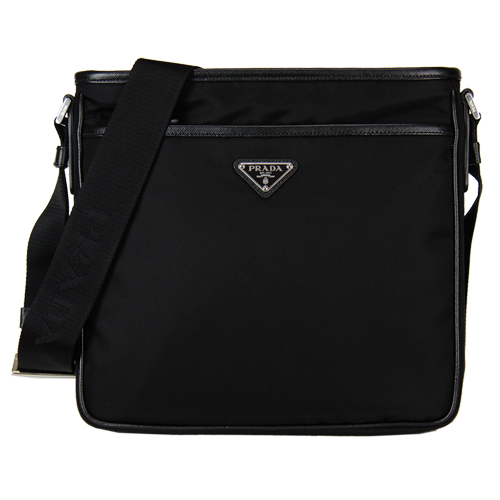 PRADA 素色尼龍扣式斜背郵差包(黑)